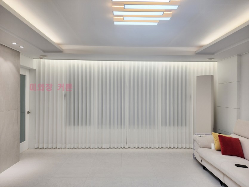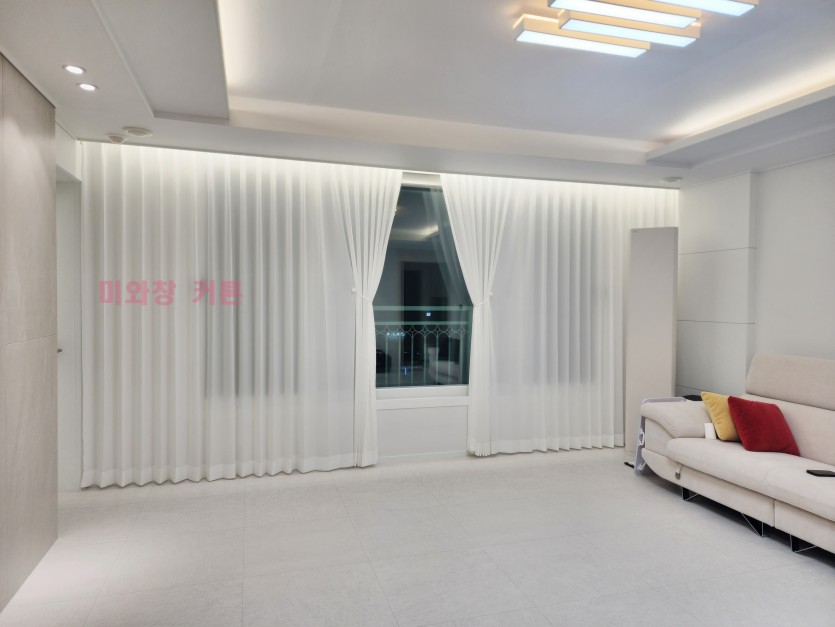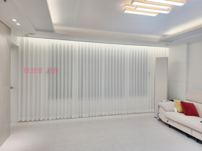 아파트 거실 화이트 쉬폰커튼 시공