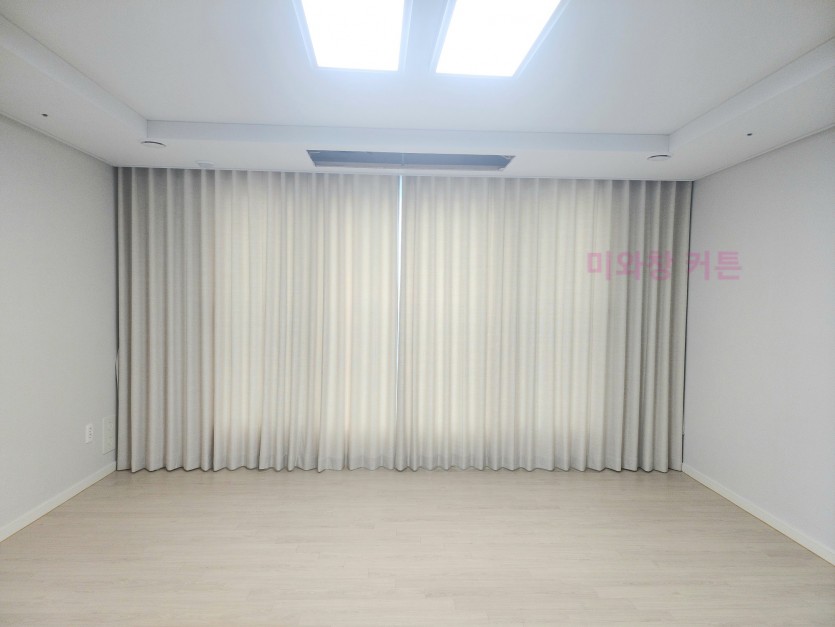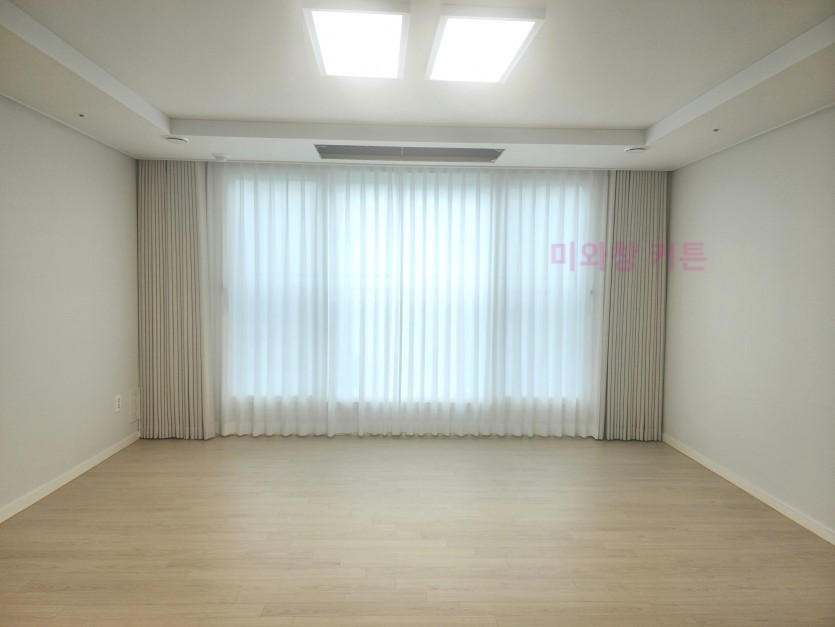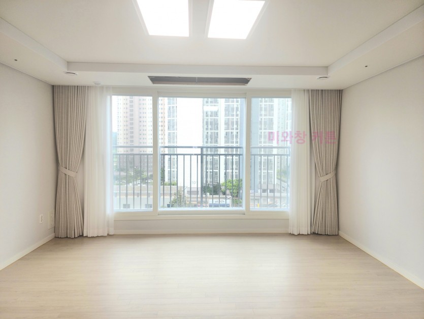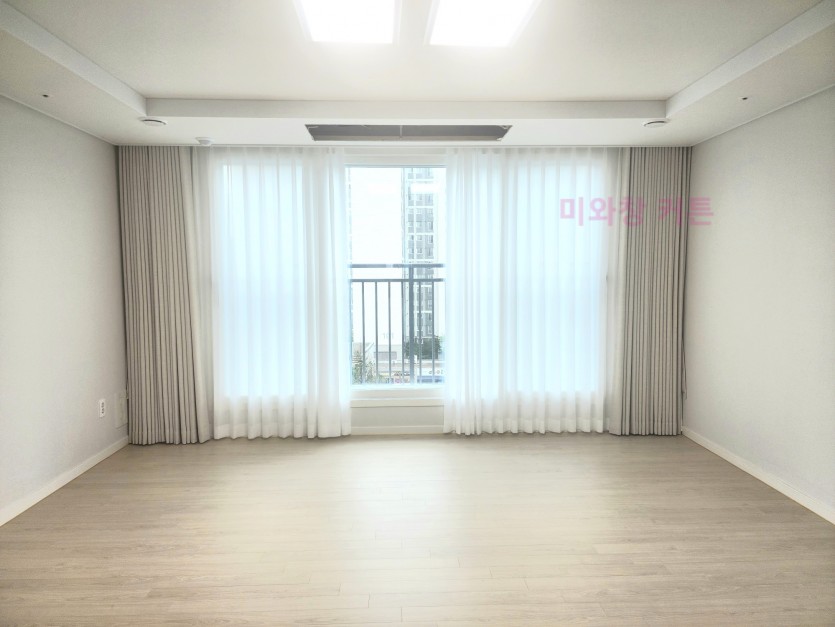 풍림아이원 거실 화이트 쉬폰커튼 + 오트밀 암막커튼 시공