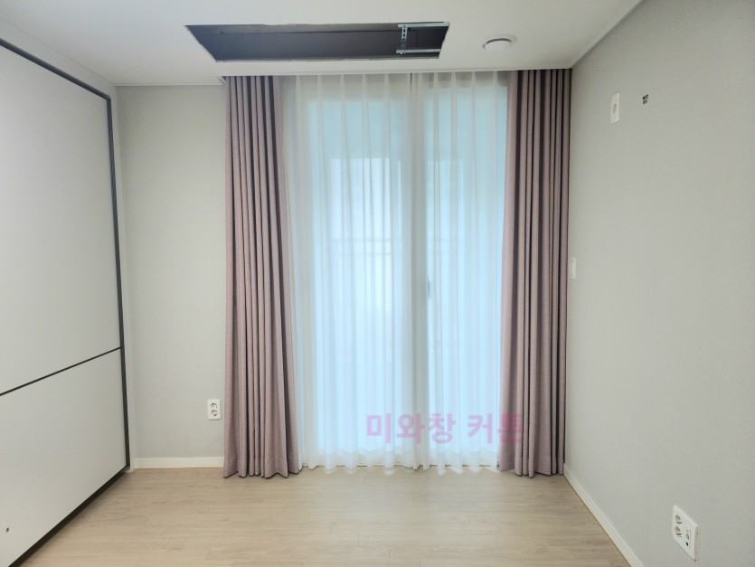 풍림아이원 안방 화이트 쉬폰커튼 + 라벤더핑크 암막커튼 시공