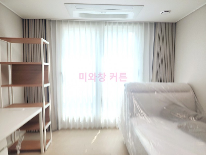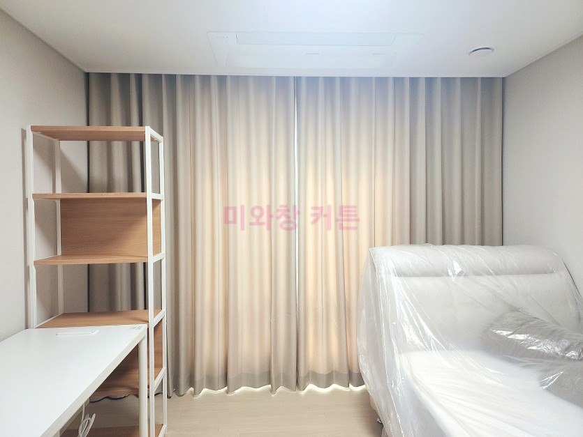 풍림아파트 작은방 베이지 암막커튼 + 화이트 쉬폰커튼 시공
