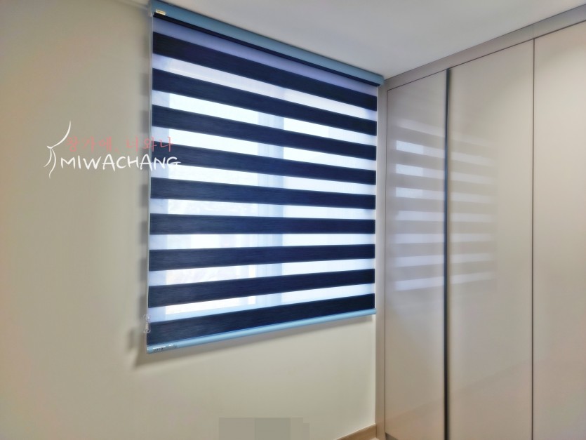 주택 작은방 다크블루 암막콤비 블라인드 시공