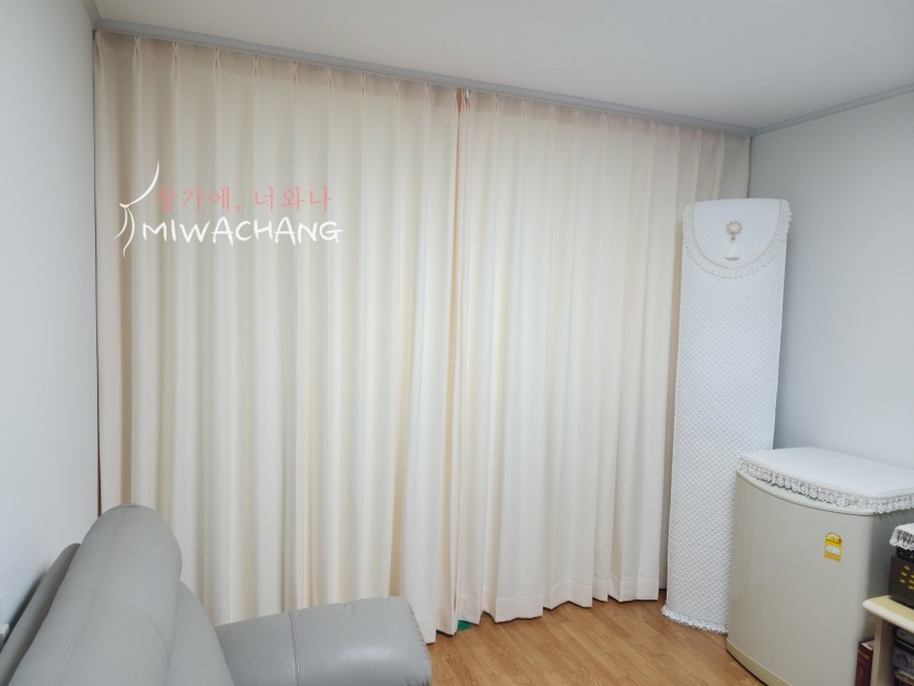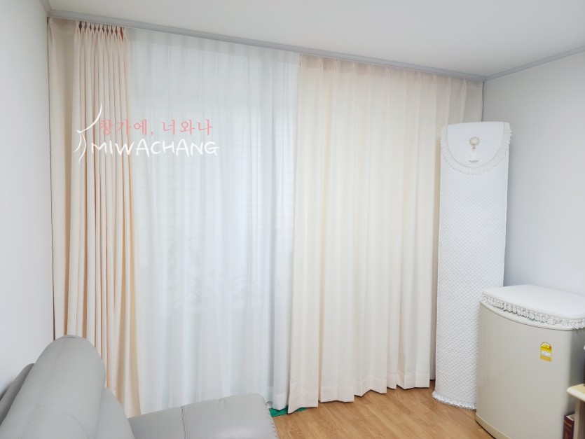 아파트 거실 아이보리 무지커튼 + 화이트 쉬폰커튼 시공