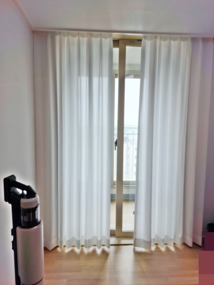 아파트 작은방 화이트 고밀도쉬폰커튼 시공