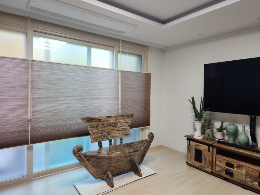 주택 거실 허니콤쉐이드(원코드탑다운) 시공