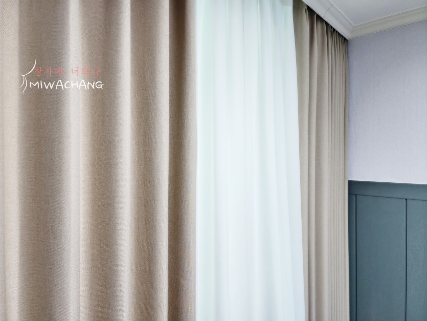 아파트 거실 베이지 암막커튼 + 화이트 쉬폰커튼 시공