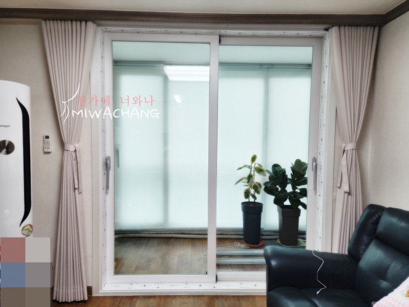 아파트 거실 핑크베이지 커튼 시공