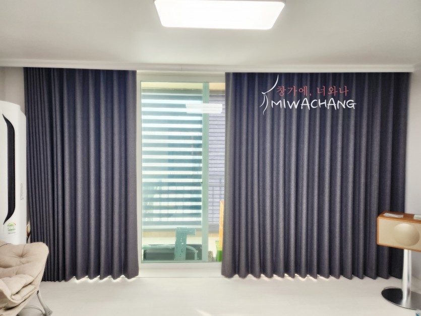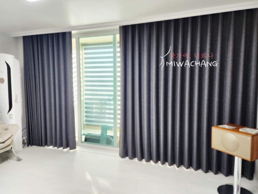 아파트 거실 차콜블랙 암막커튼 시공