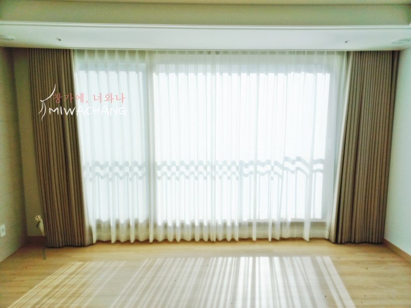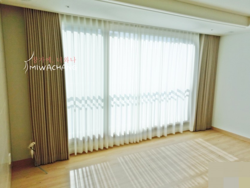 아파트 거실 골드베이지 암막커튼 시공
