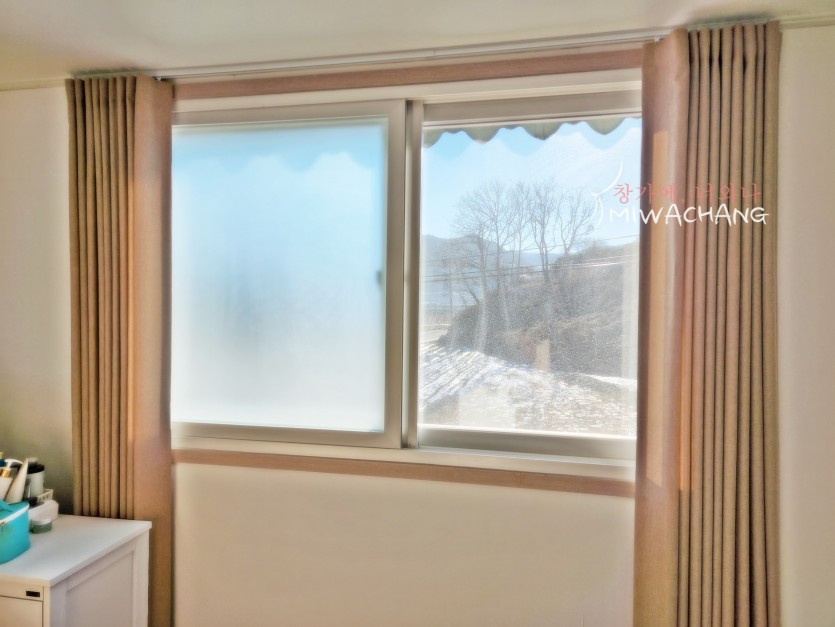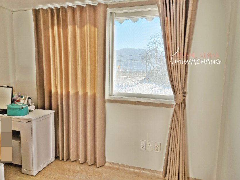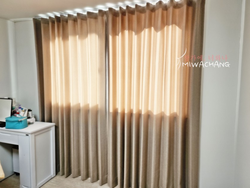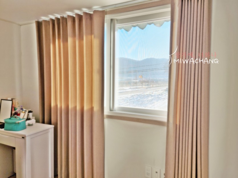 저희 미와창의 베이지 암막커튼을