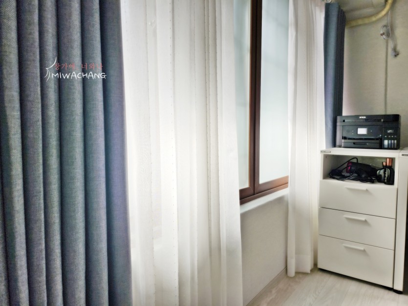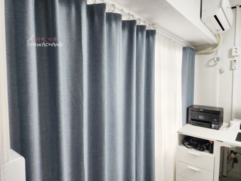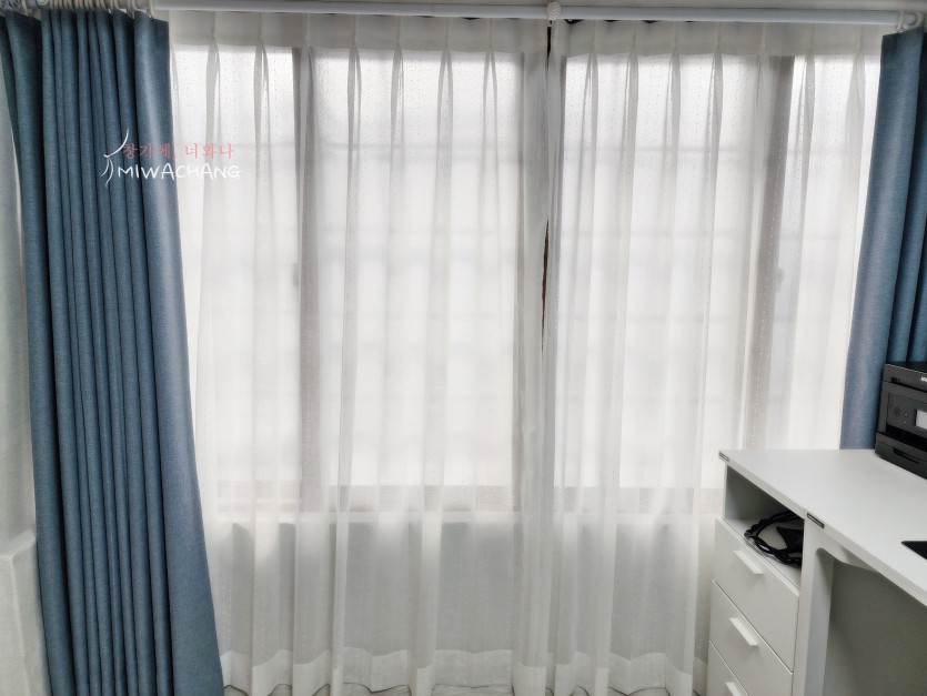 주택 작은방 린넨룩 속커튼 + 블루 암막커튼 시공