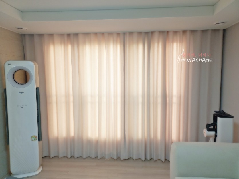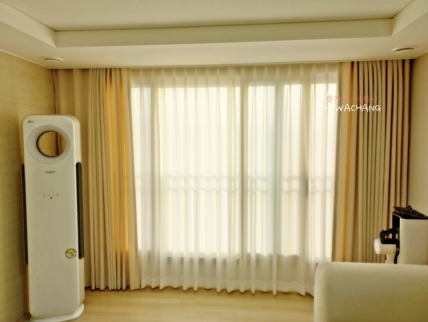 아파트 거실 크림베이지 무지커튼 + 화이트 쉬폰커튼 시공
