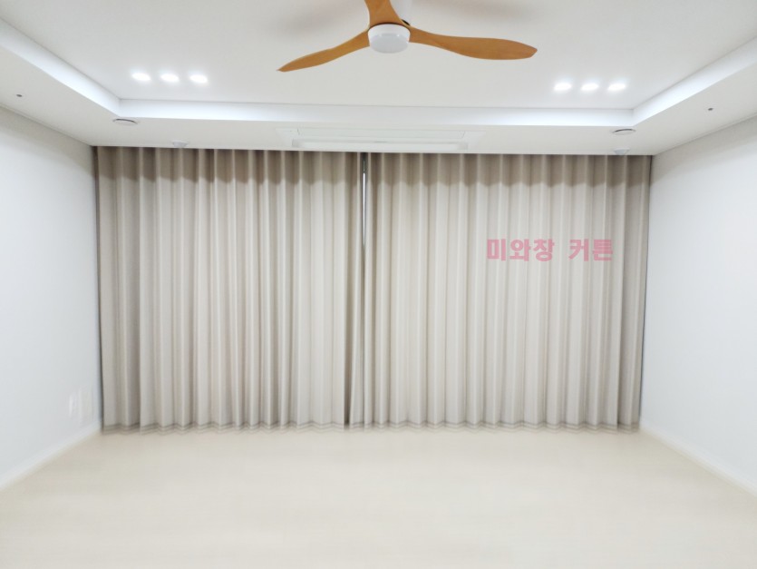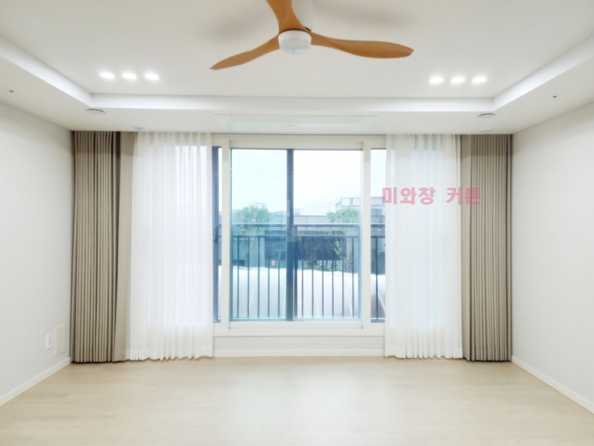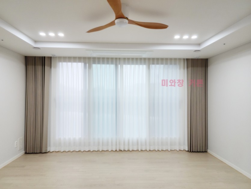 풍림아이원 거실 베이지 암막커튼 + 화이트 쉬폰커튼 시공