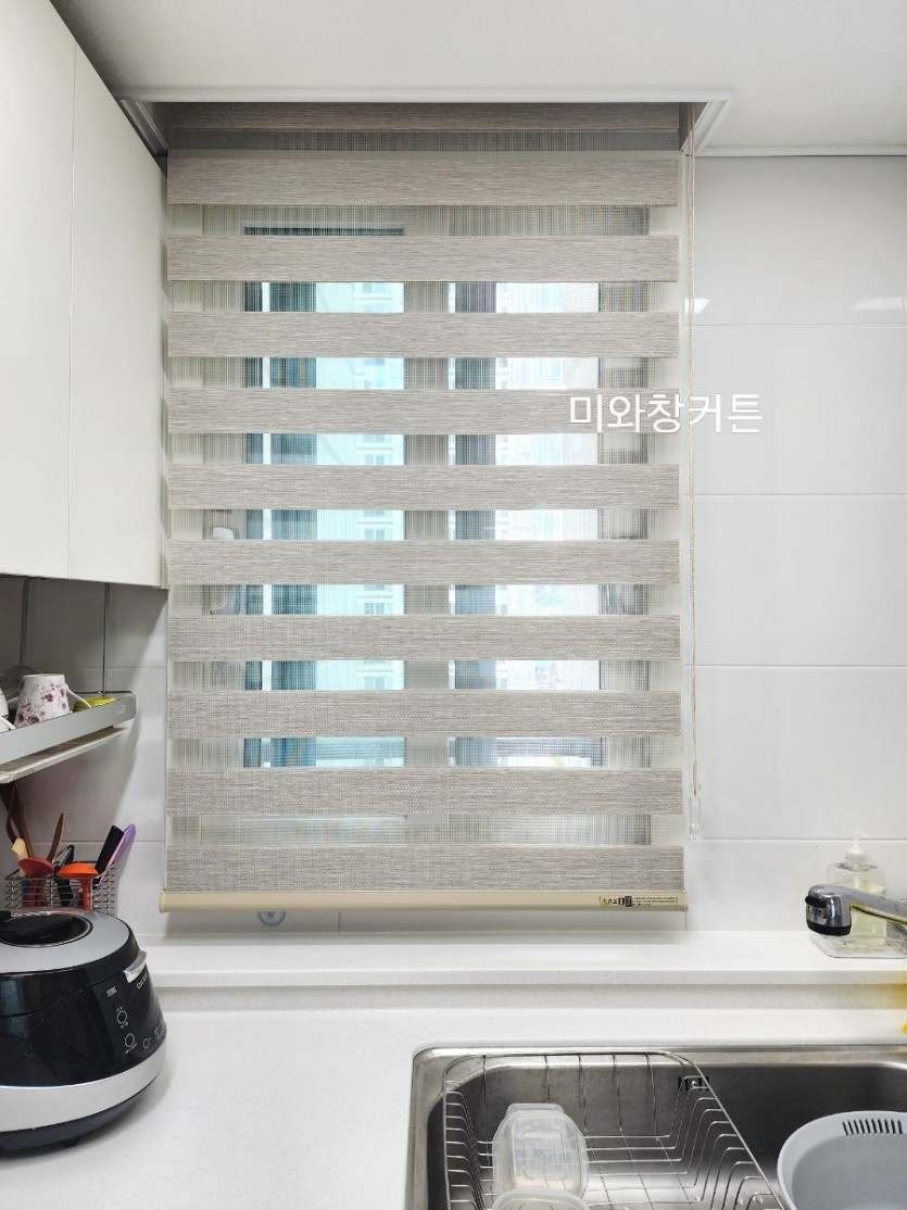 아파트 주방 라이트그레이지 콤비블라인드 시공