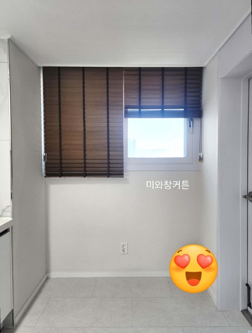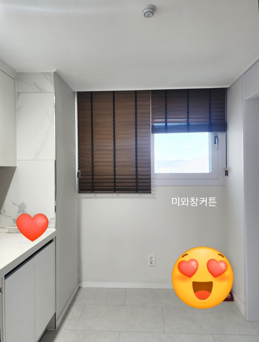 아파트 주방 브라운 우드블라인드 시공