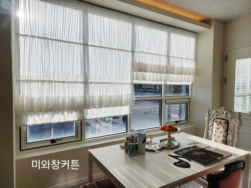 화이트 쉬폰 로만쉐이드로