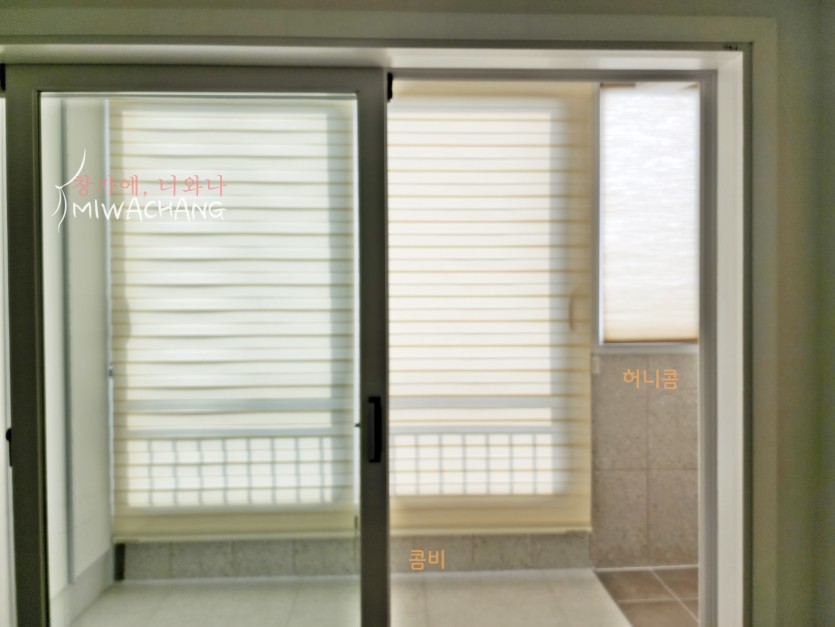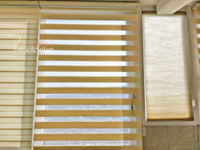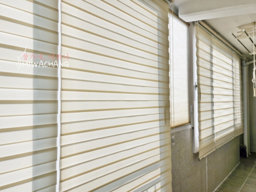 아파트 베란다 아이보리 콤비블라인드+ 허니콤쉐이드 시공