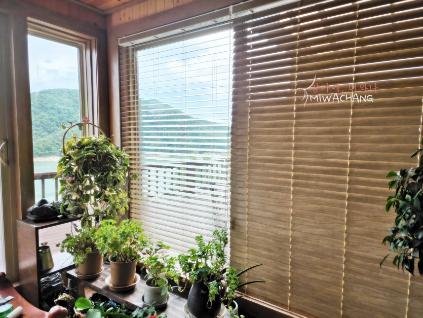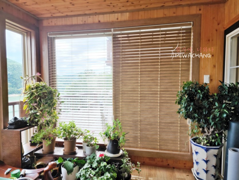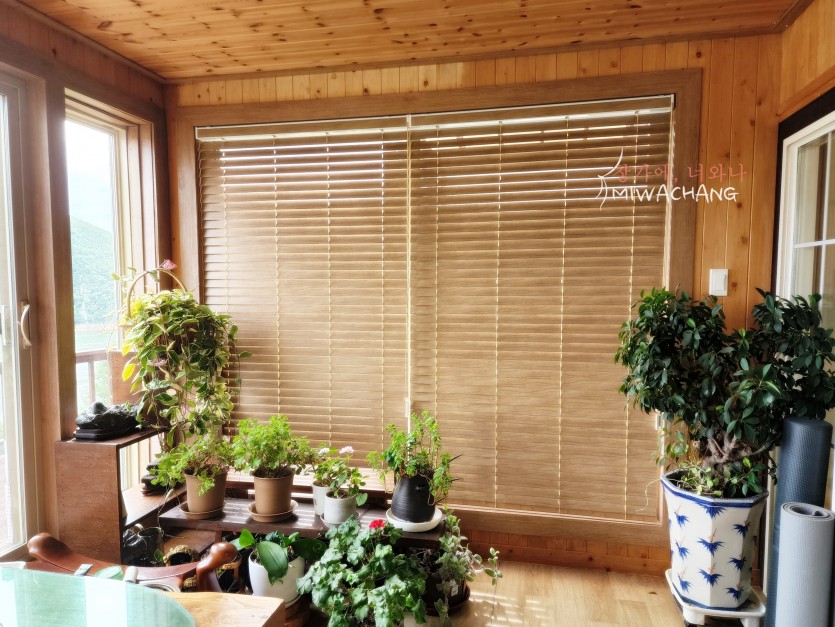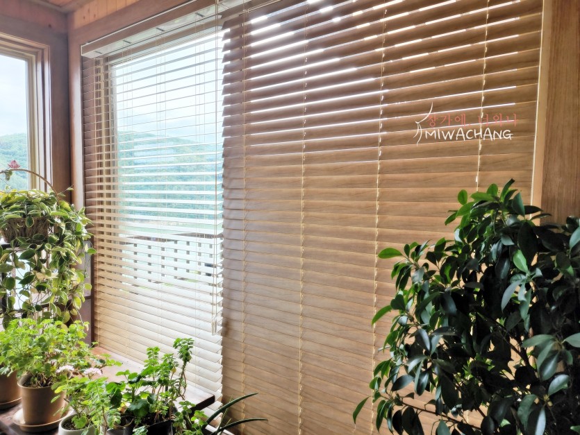 저희 미와창의 우드블라인드로 내추럴 감성을