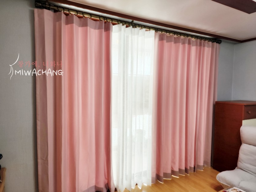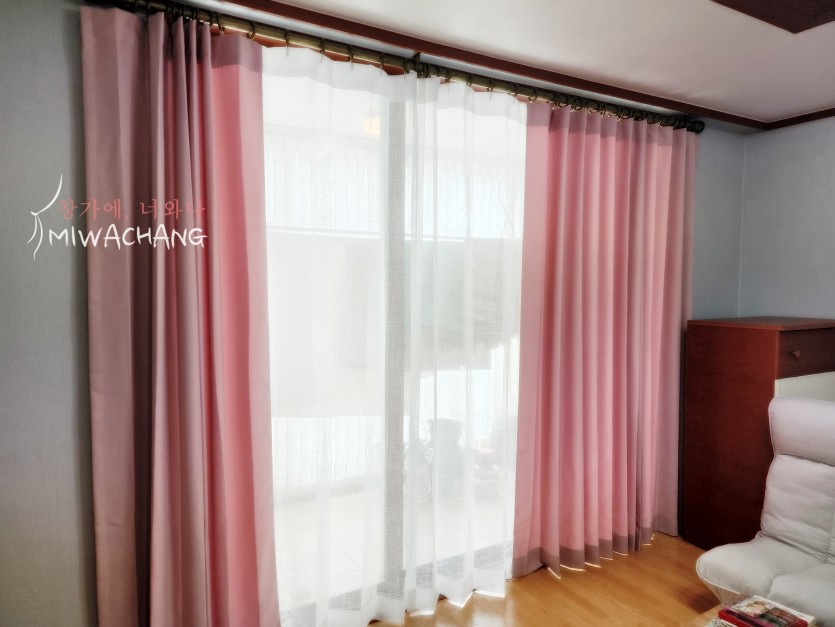 핑크 무지커튼만 있어도 화사한 공간이 연출될텐데