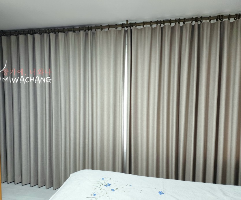 중간 베이지색 암막커튼과