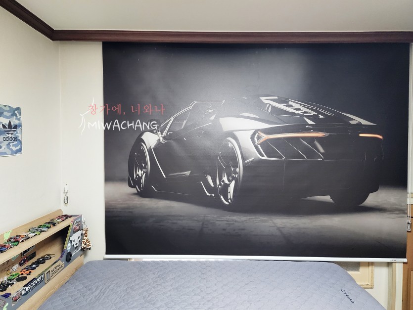 자동차 그림 실사롤스크린을 암막으로 제작하여 설치해드렸어요~