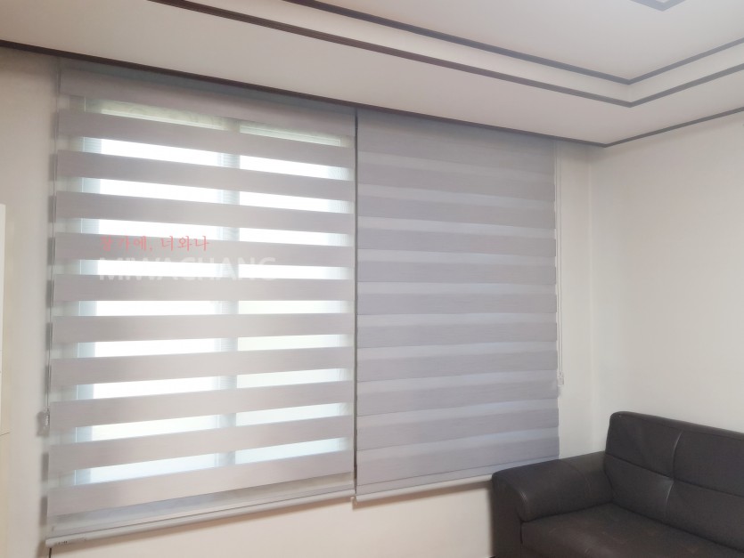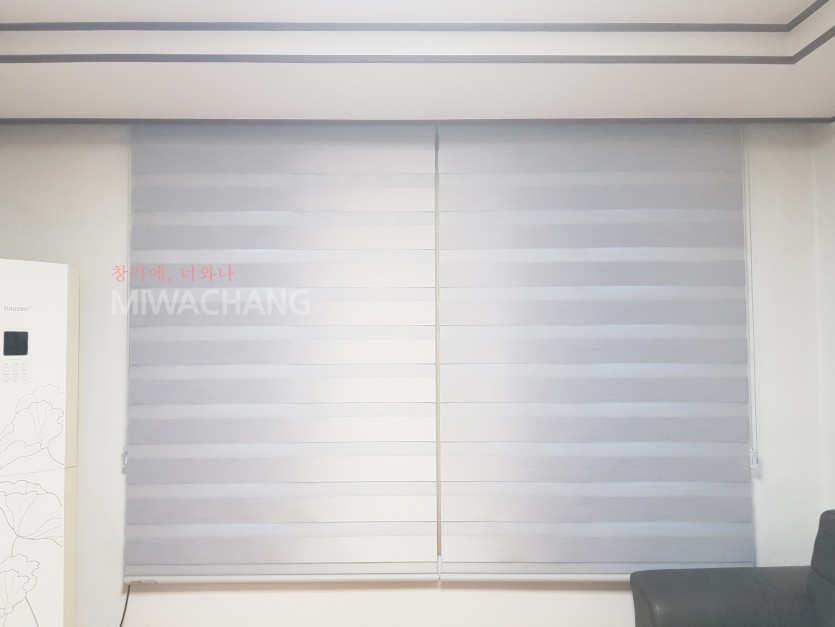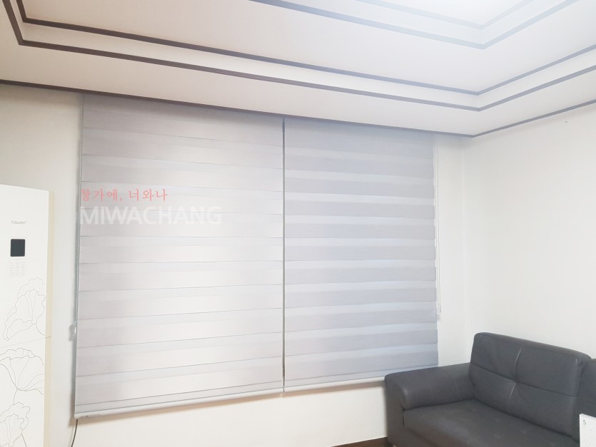 주택 거실 그레이 암막 콤비블라인드 시공
