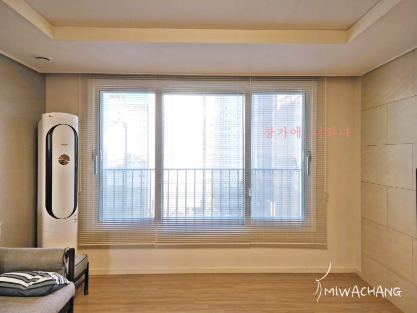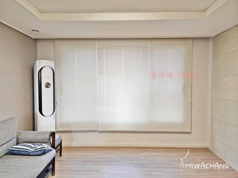 아파트 거실 아이보리 알루미늄 블라인드 시공
