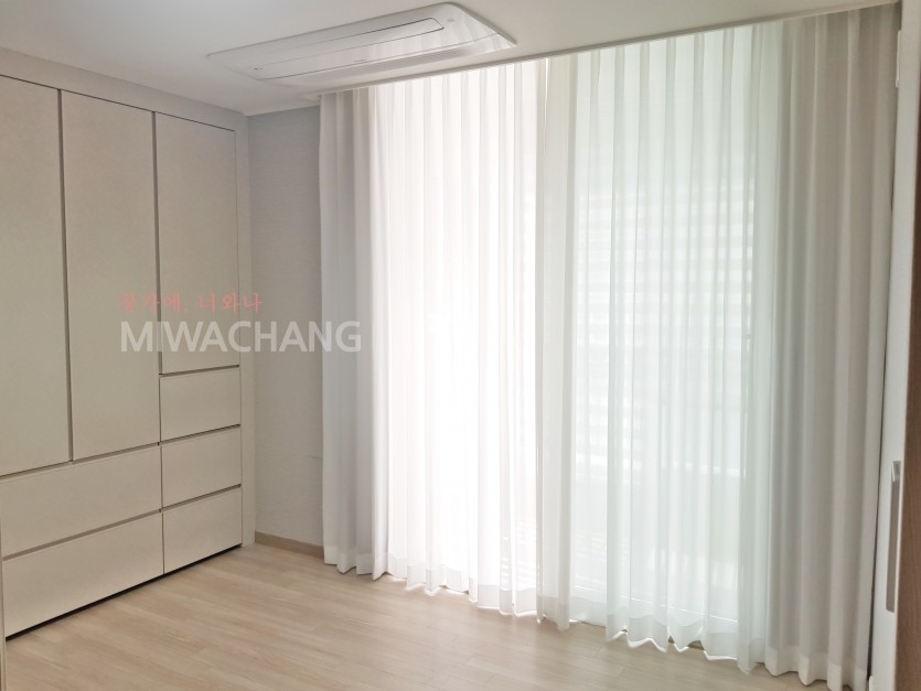 아파트 안방 화이트 쉬폰 커튼 시공