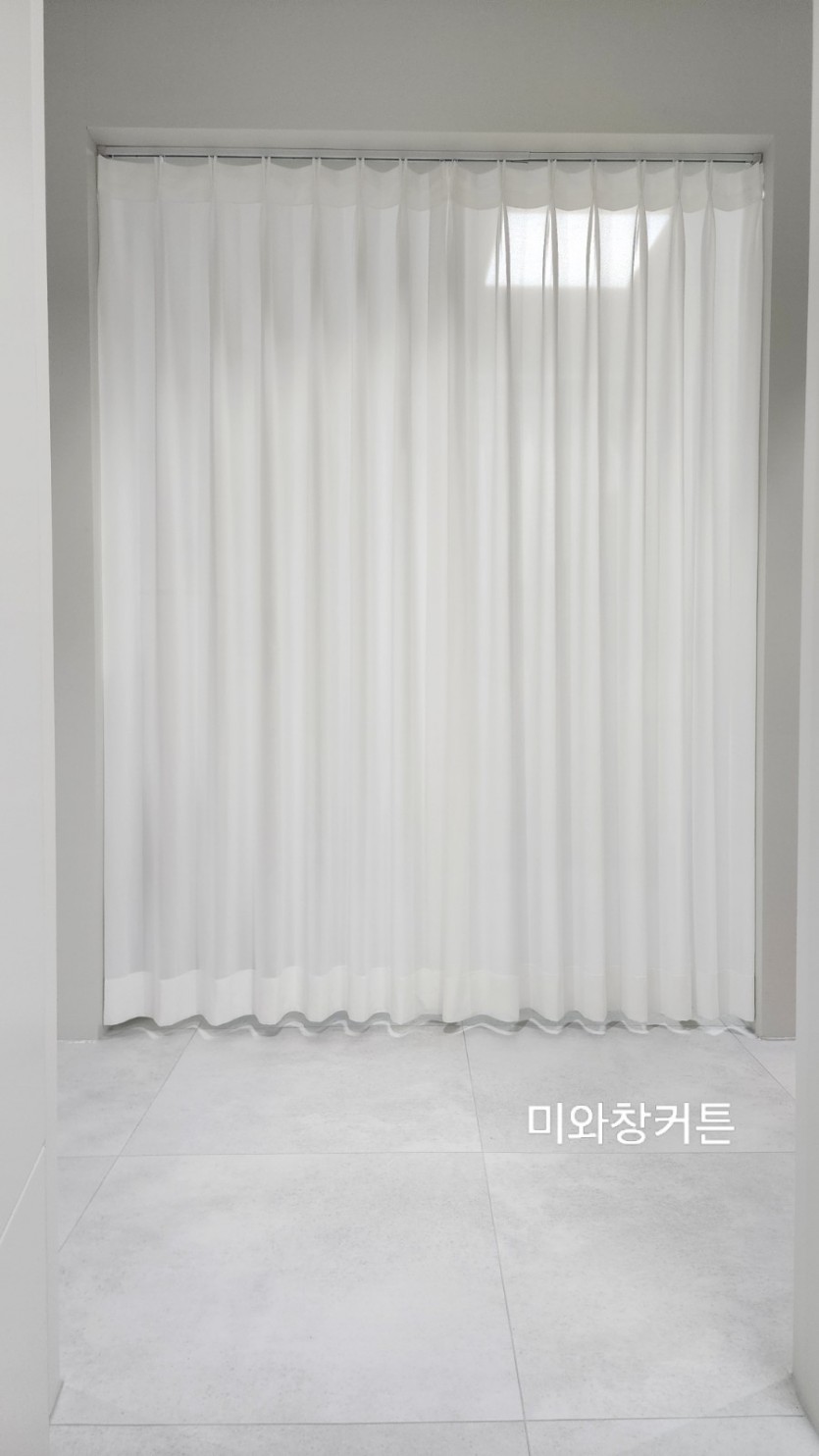 아파트 드레스룸 화이트 밀크쉬폰커튼 시공
