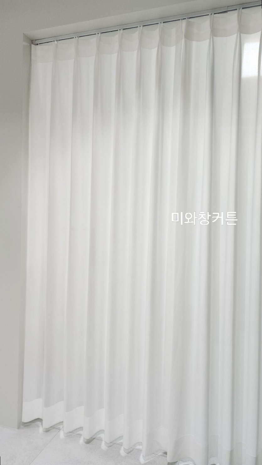 화이트 밀크쉬폰커튼 나비주름으로 제작하여