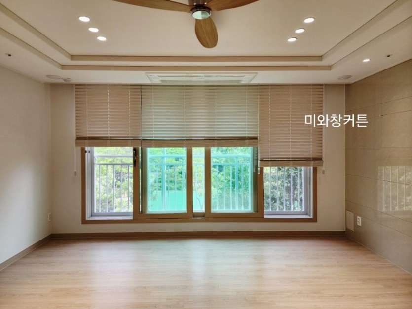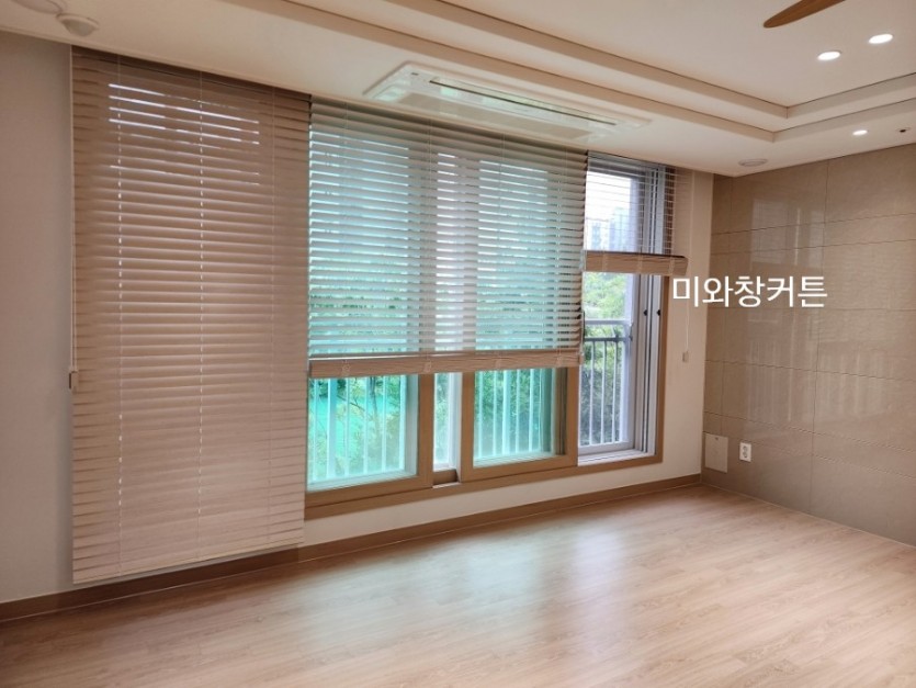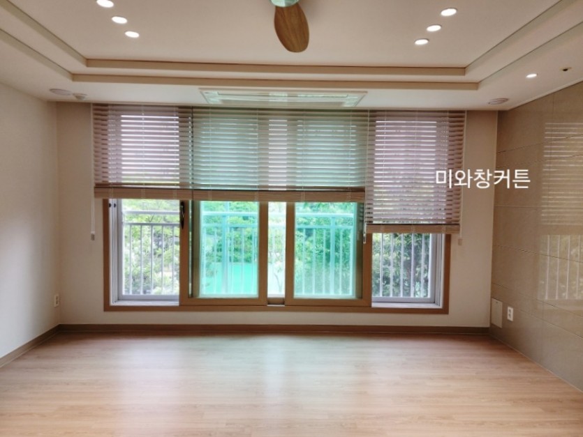 아파트 거실 워시화이트 우드블라인드 시공