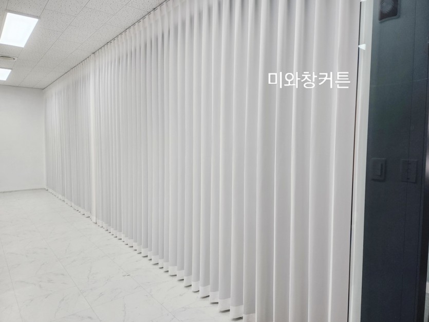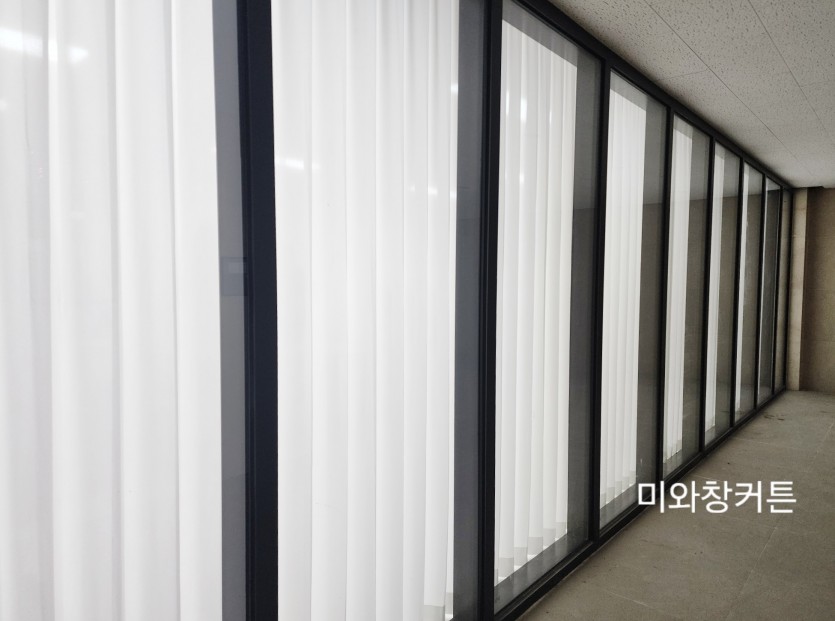 아파트 지하상가 통창 화이트 밀크쉬폰커튼 시공
