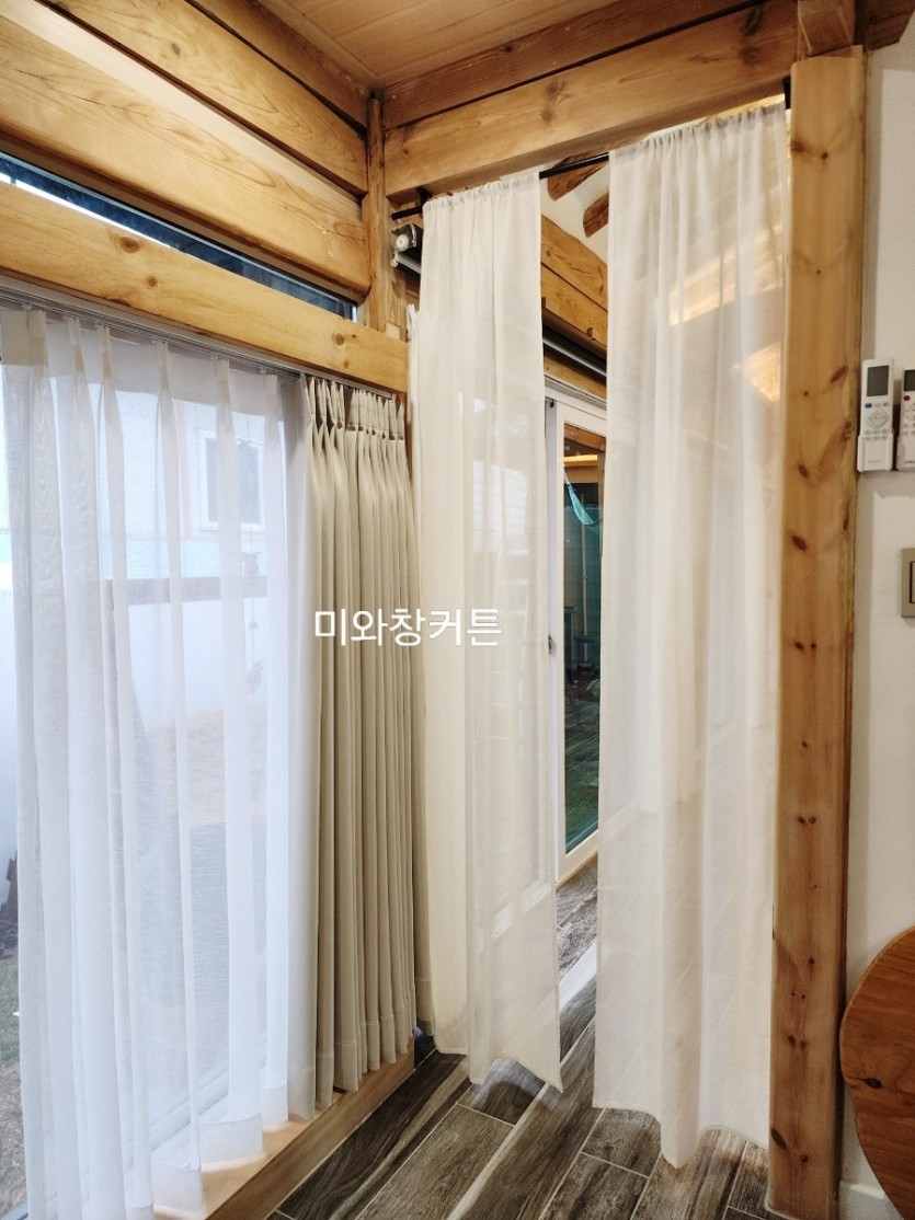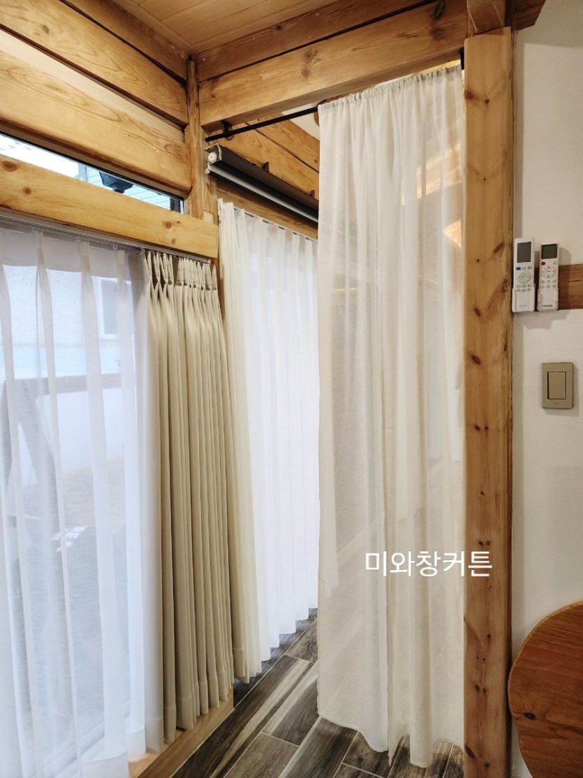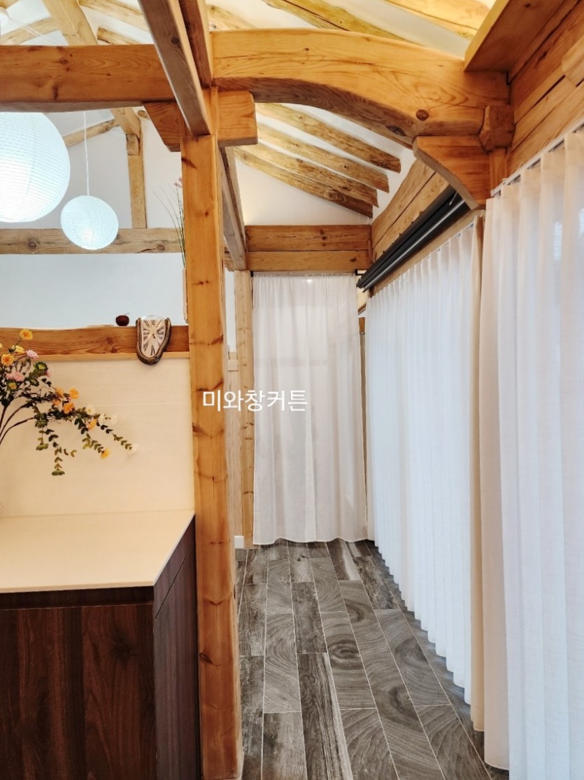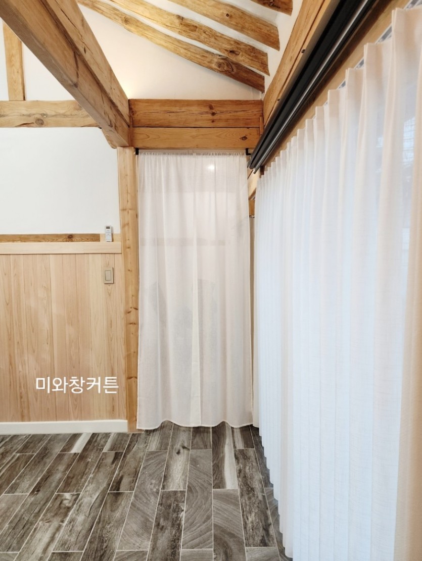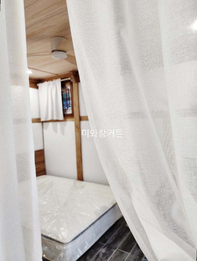 한옥스테이 통로 크림화이트 린넨 가림막커튼 시공