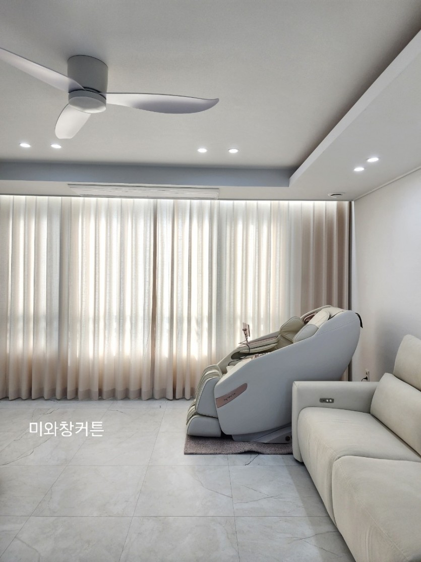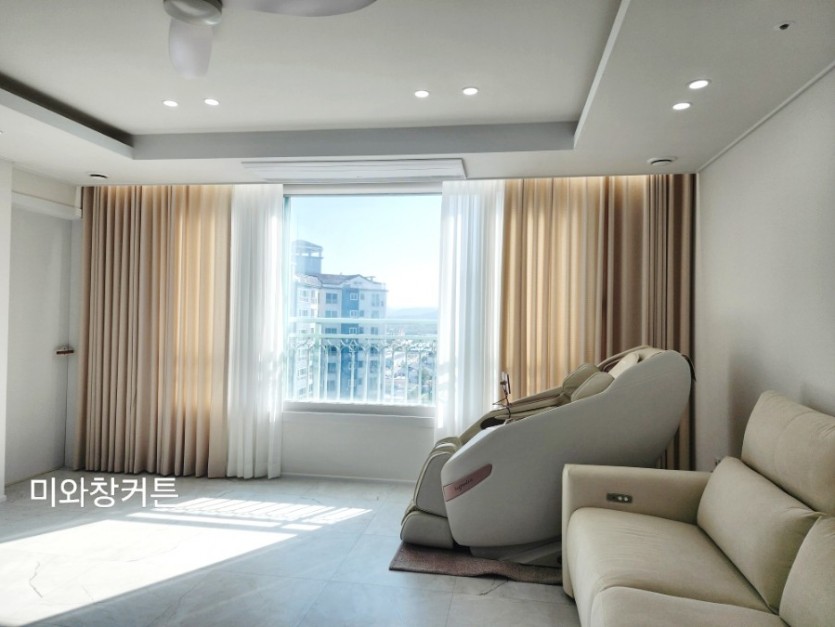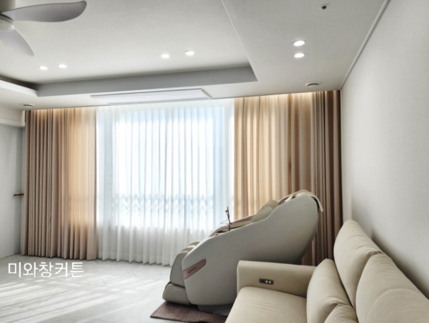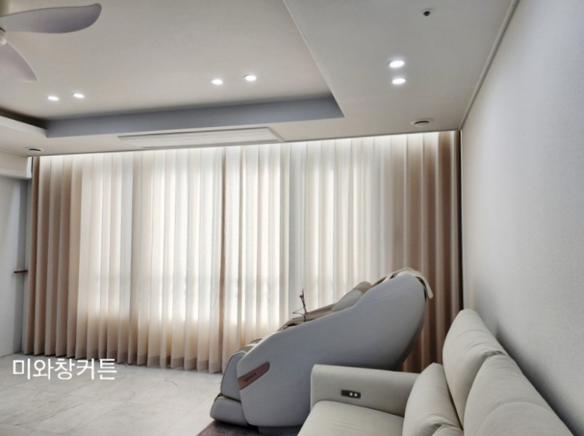 아파트 거실 화이트 쉬폰커튼 + 라이트베이지 린넨룩커튼 시공
