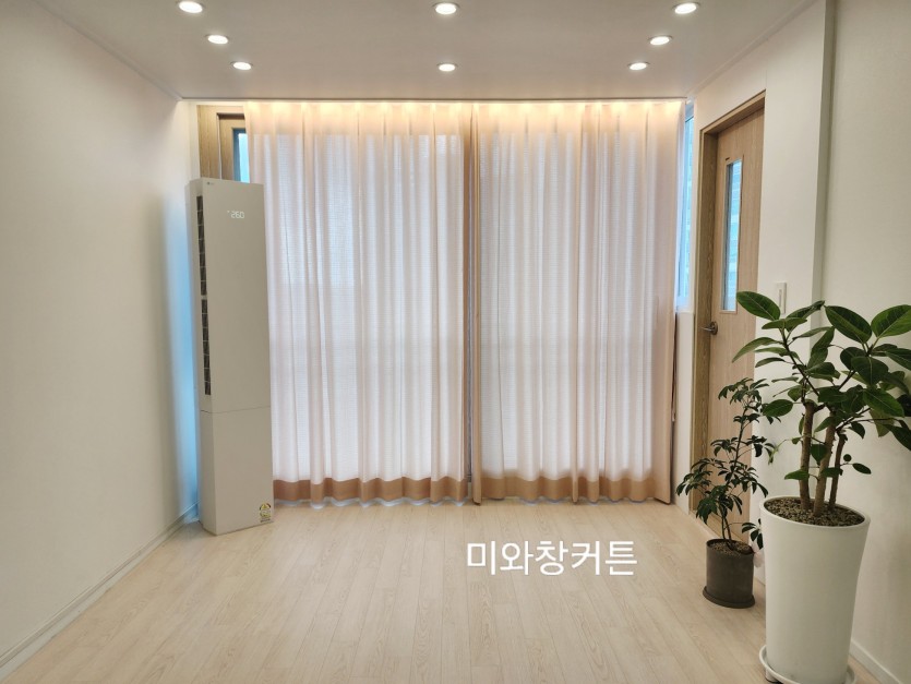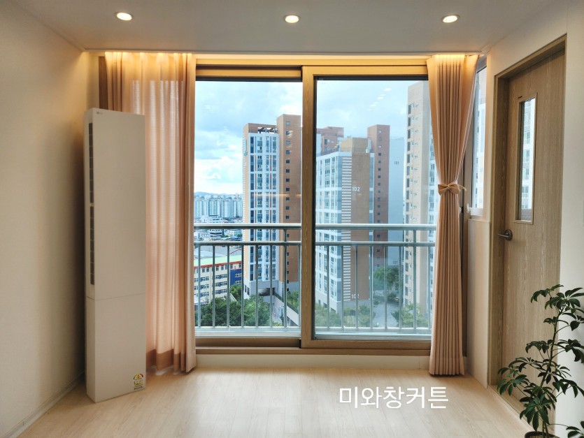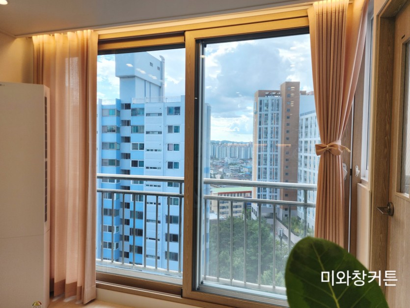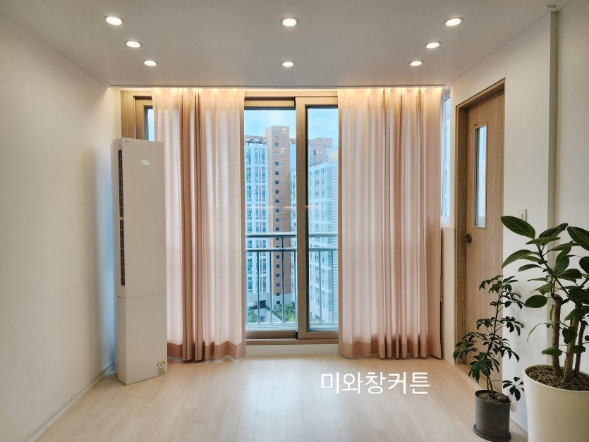 아파트 거실 웜핑크 린넨룩커튼 시공