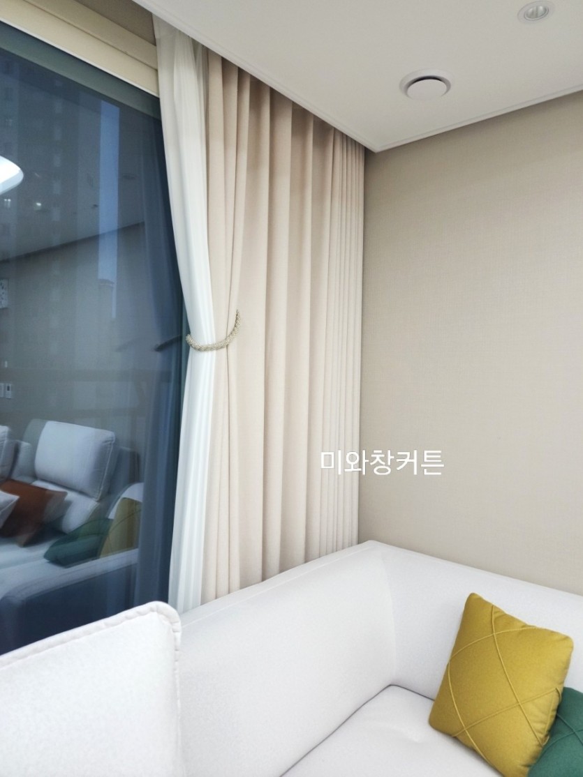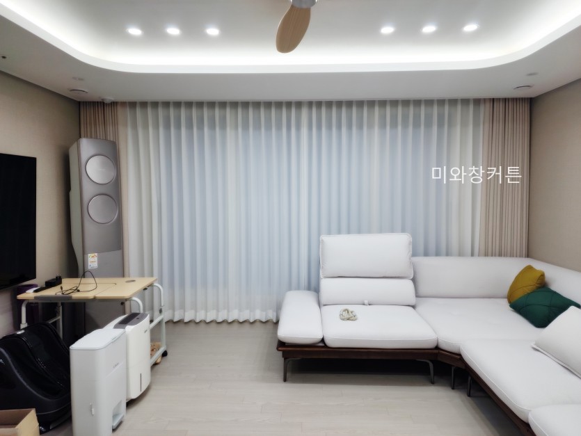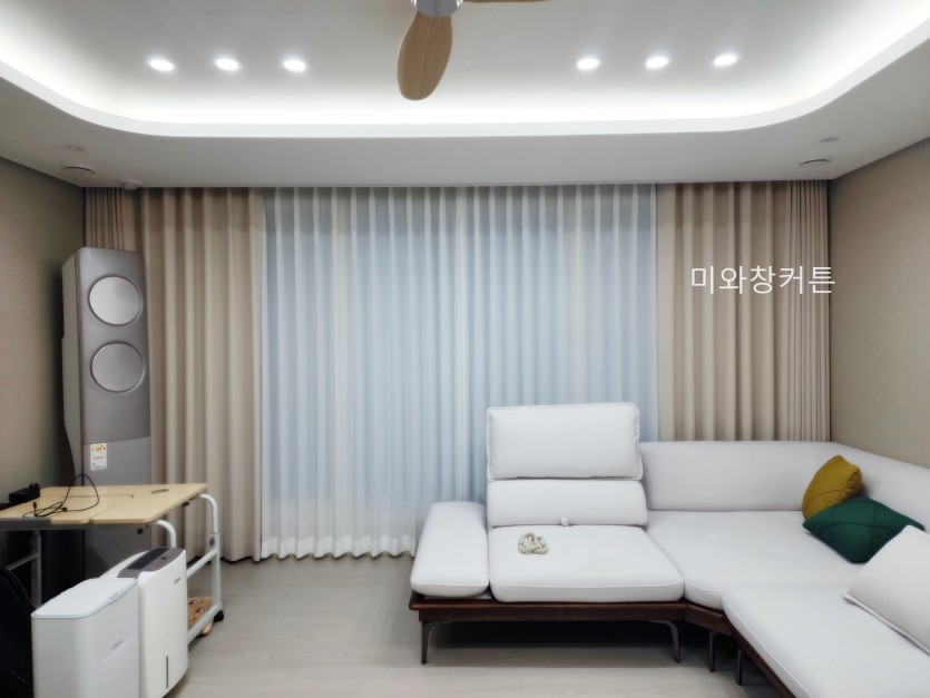 아파트 거실 화이트 쉬폰커튼 + 라이트베이지 커튼 시공