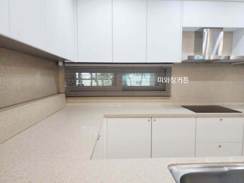 아파트 주방 다크베이지 알루미늄블라인드 시공