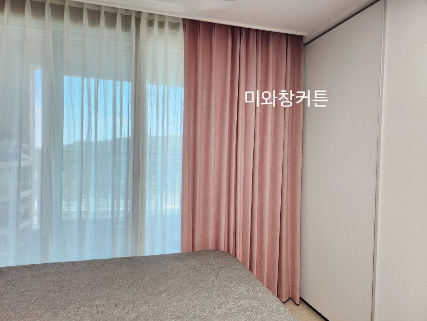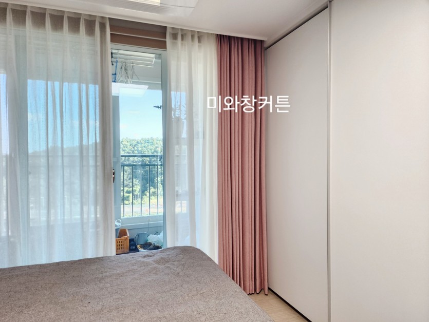 영무예다음 안방 핑크 커튼 + 화이트 린넨룩속커튼 시공