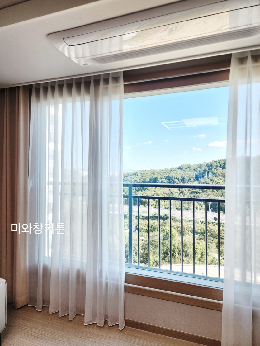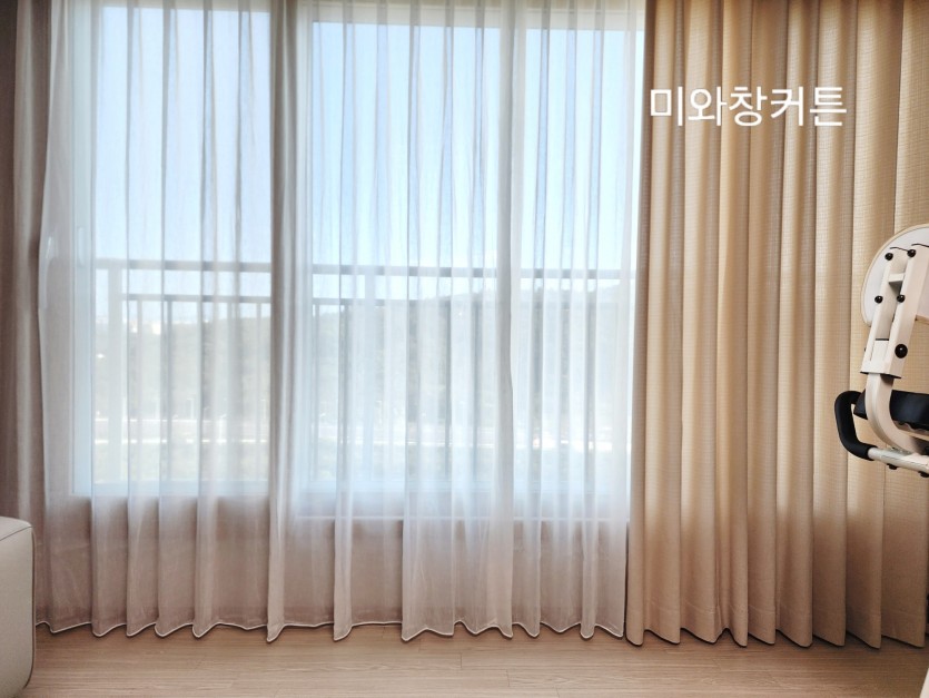 영무예다음 거실 크림화이트 린넨커튼 + 라이트베이지 린넨룩커튼 시공