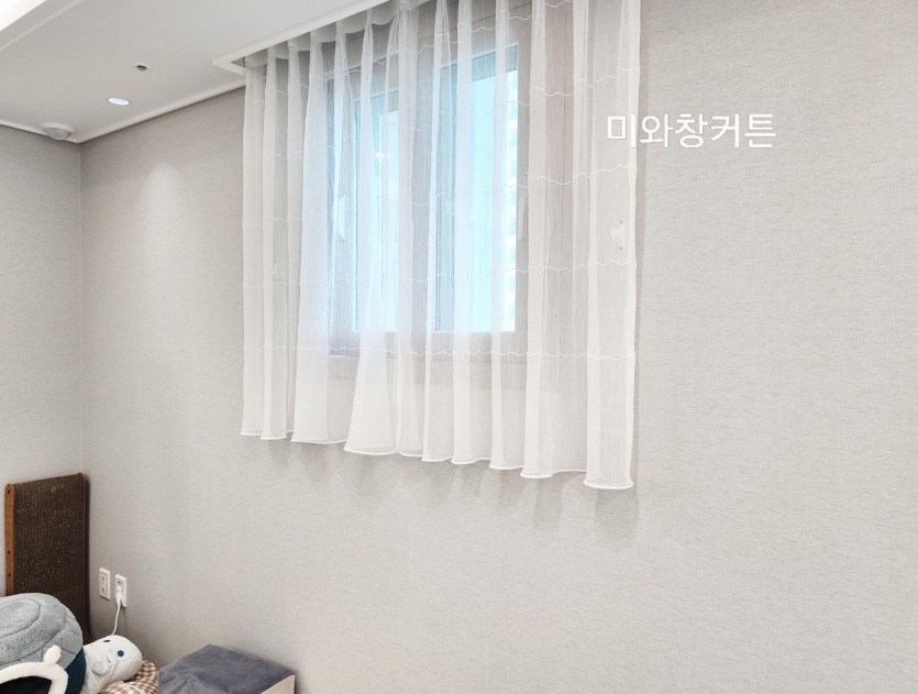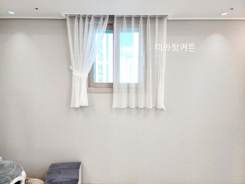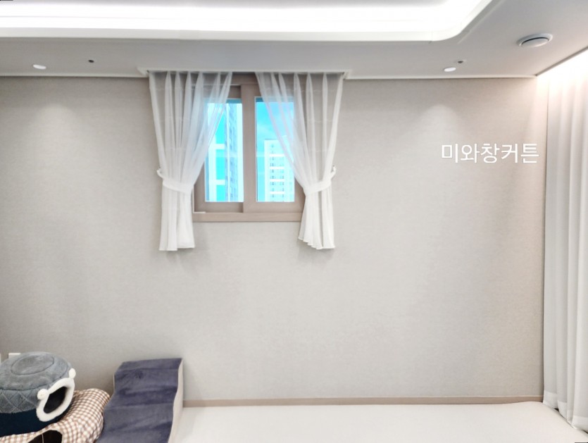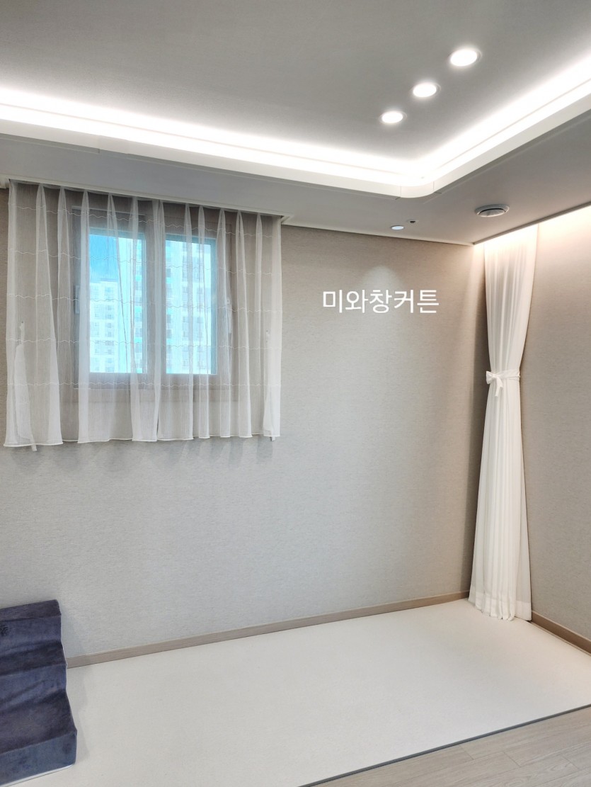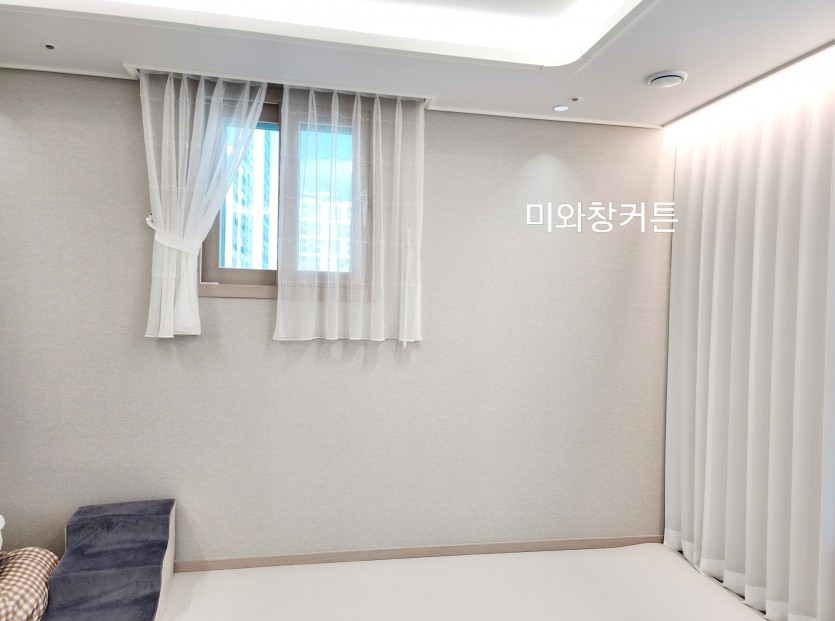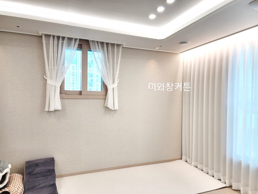 영무예다음 거실옆창 화이트 플리츠 수입커튼 시공