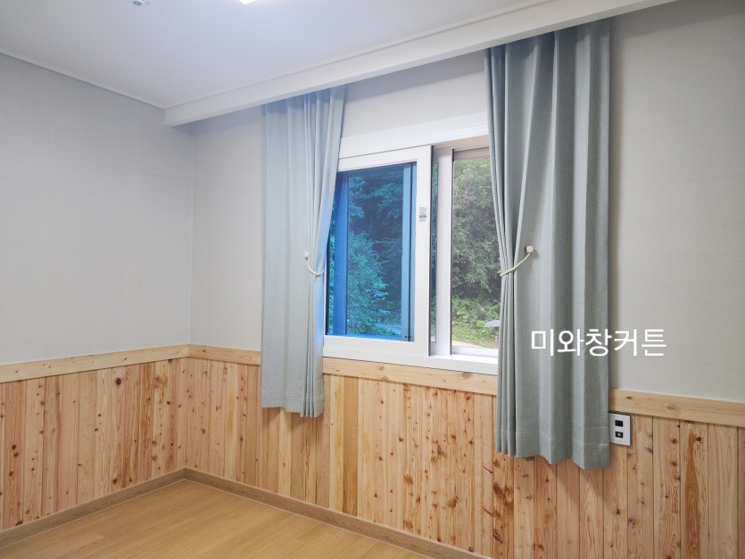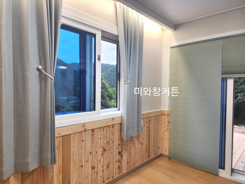 전원주택 작은방 민트 커튼 + 민트 허니콤블라인드 시공