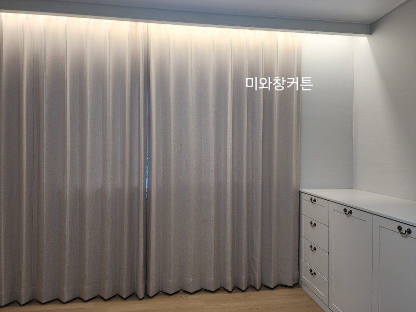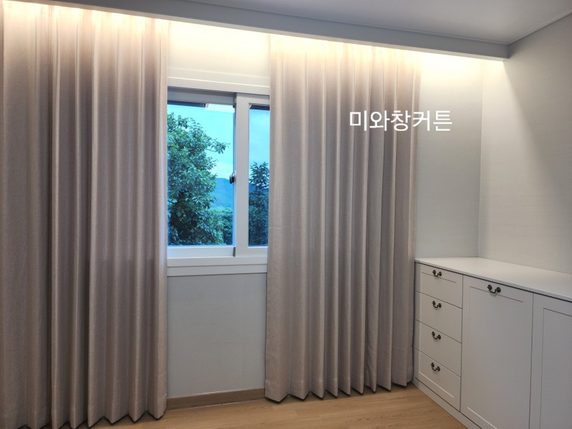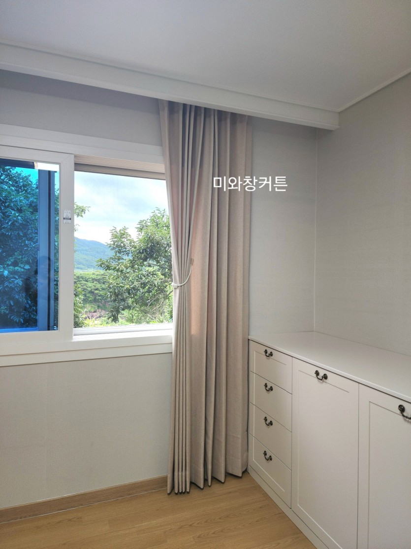 전원주택 안방 베이지커튼 시공