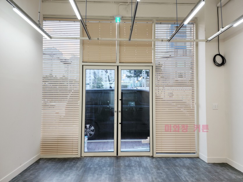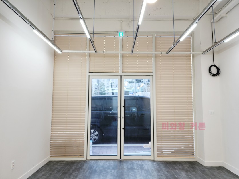 상가 통창 라이트베이지 오동나무 우드블라인드 시공