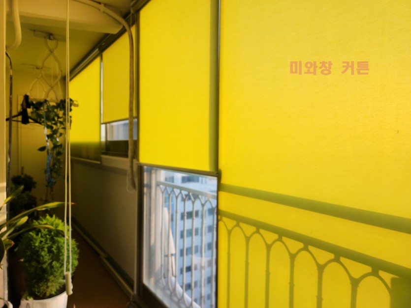 아파트 베란다 옐로우그린 롤스크린 시공