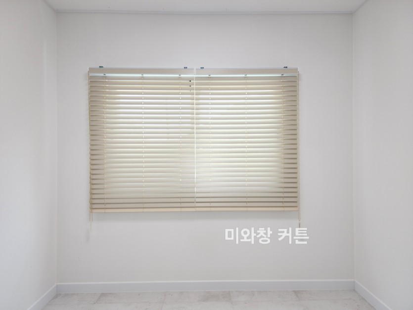 주택 작은방 라이트베이지 우드블라인드 시공
