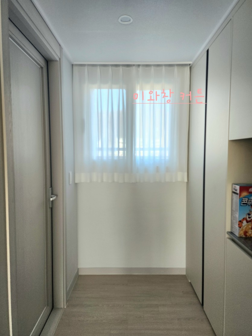 어반마제네스 주방 화이트 쉬폰커튼 시공