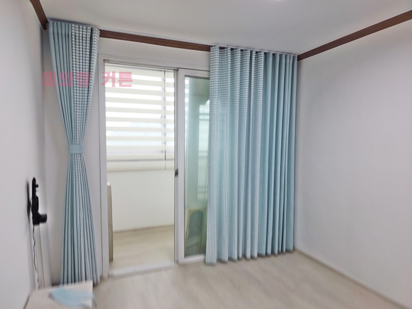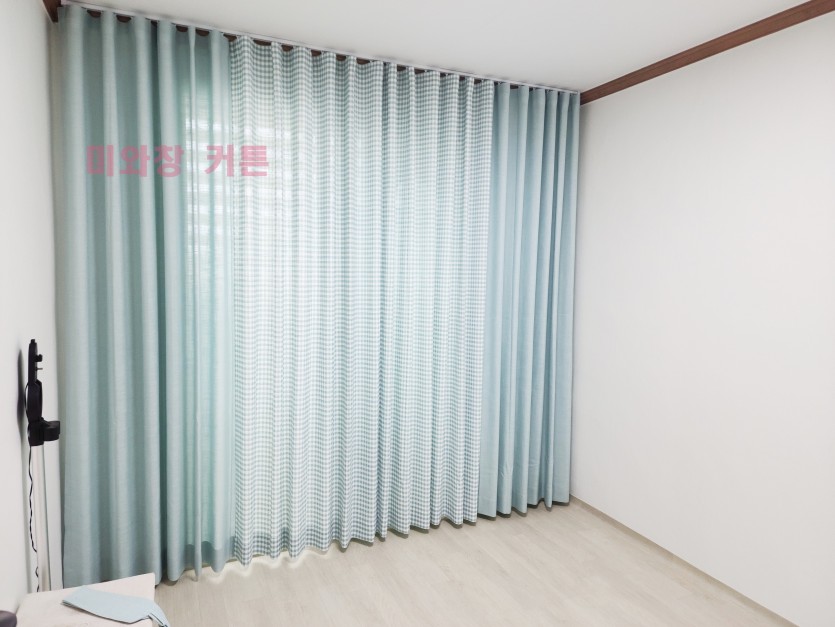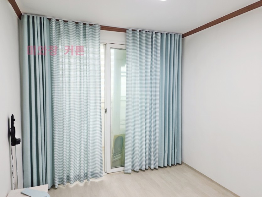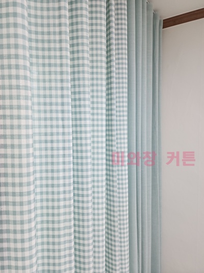 민트 체크 + 무지 커튼